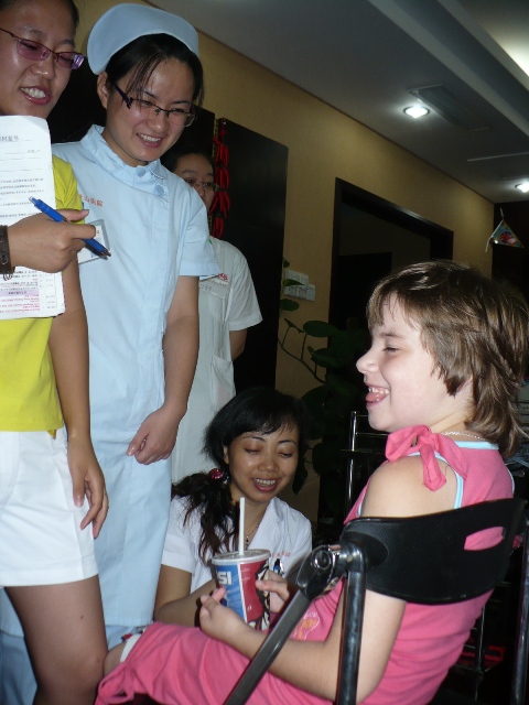 Tegnap fényképeket nézegettünk a kinai útról. Hihetetlen, de az én egyetlen kincsem minden idegszálával a képekre figyelt. Minden egyes képet kommentált a maga módján. Mi értettük, hogy mit akart mondani. Emlékszik mindenre ami ott történt, mondja a neveket, felismeri hogy merre jártunk. Orvosokhoz és terapeutákhoz hozzáfűz dolgokat ami eszébe jut, pl. amikor meglátta az akupunktúrás doktor bácsi fotóját, azonnal mutatott a fejére, és közölte, hogy fáj. (Igen, a fejébe szúrkálta a tűket.) Felismeri a beteg gyerekeket is akik ott voltak velünk, és a szüleiket is, nevükön nevezi őket, és közli, hogy kiket szeret. A csillogó tekintet, a beleélés mind mind arra utal, hogy szeretettel emlészik vissza a történtekre.