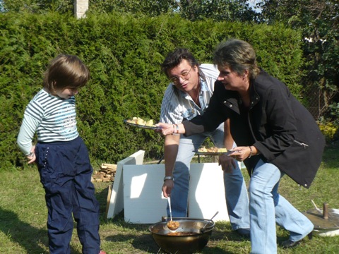 Nagy örömöm volt az is, hogy mielőtt eljöttünk, megkockáztattunk ott egy ebédet is, lesz ami lesz alapon. (legfeljebb borul az asztal.) Az én okos nagylányom, úgy viselkedett, hogy el sem hittem. Türelmesen megvárta az asztalnál az ételt, csendesen nyugodtan. Aztán evett, ivott mint a felnőttek, nem mint itthon szokott, kismalac módjára. Villával! Amikor megtelt a pocakja, máskor elrohan, most szépen nyugodtan megvárta, amig a többiek is befejezik. Csodásak ezek az apró örömök.... sok legyen belőlük! Hajrá Lila!